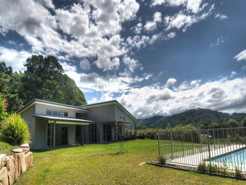 A minimalist statement in style, this eco friendly family home has everything – one the best blocks in the serene Lakes estate in Currumbin Valley – north east facing with wide wide Valley views – 4 generous bedrooms and 3 bathrooms – separate living room with full bathroom – ideal as granny flat/studio etc – 3m ceilings throughout the home provide a lofty and airy feel even on the hottest of days – many inside/outside spaces to work, play or simply relax – deep 9m x 5m pool – double garage with workshop and separate shed with roller door – grassed areas to play and natural bush gullies to explore – complete with tree house and flying fox across the stream…..The whole property shrieks understated, eco conscious, family oriented, perfection. Call for an inspection.